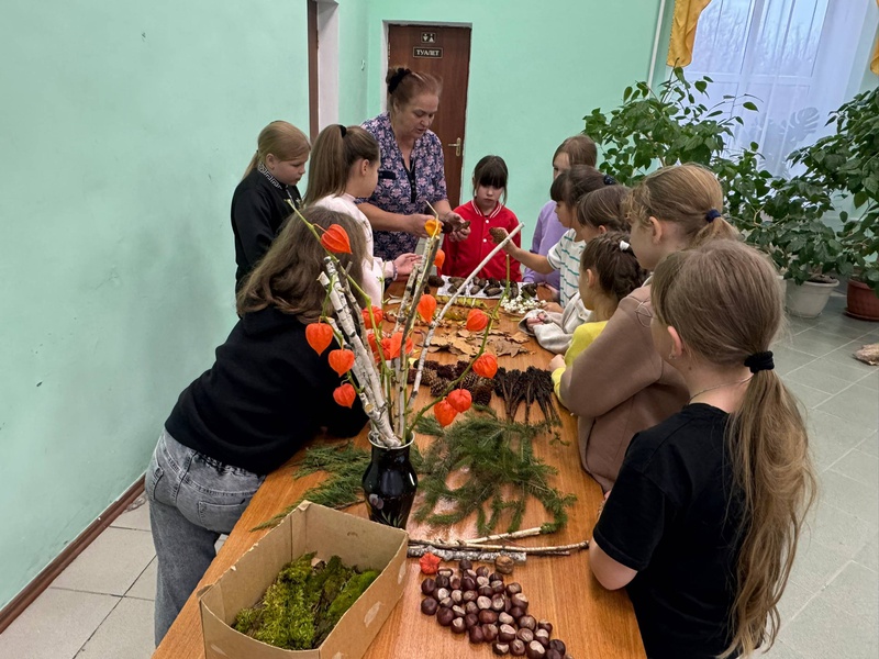 Сначала участники мастер-класса послушали о различных видах шишек и природных материалов, которые можно использовать для творчества, затем ребята с интересом приступили к созданию своих поделок.